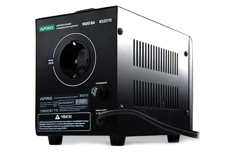 AVR-1000V APRO | Підвісний | 800 | 140–260 | 220±8% | Релейна | Для побутових приладів | Монтаж на стіну, компактний |