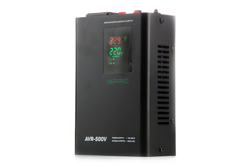 AVR-500V APRO | Підвісний | 400 | 140–260 | 220±8% | Релейна | Для дрібної електроніки | Економія місця, настінний монтаж |