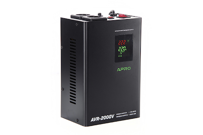 AVR-2000V APRO | Підвісний | 1600 | 140–260 | 220±8% | Релейна | Для офісної техніки | Зручне розміщення на стіні |
