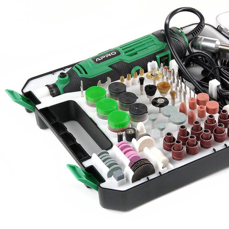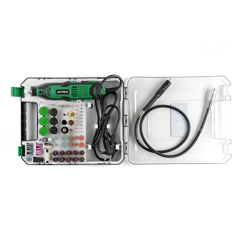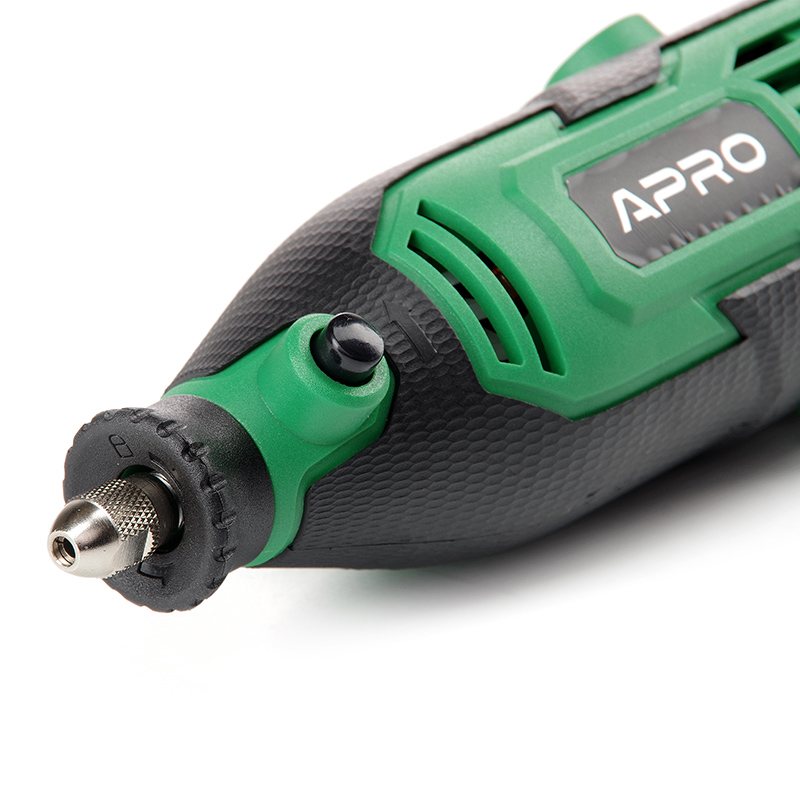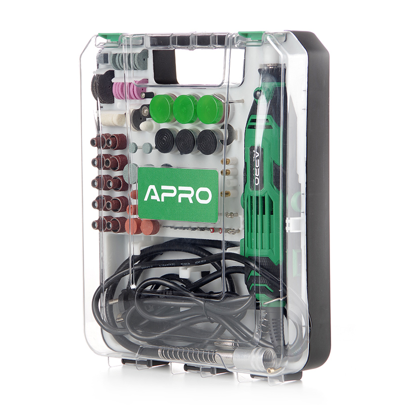 Гравер APRO EG-15/189 — це багатофункціональний інструмент для тонких і точних робіт: гравіювання, шліфування, різання, полірування та зачистки різних матеріалів. Діапазон обертів від 10 000 до 32 000 об/хв з плавним регулюванням дозволяє адаптувати інструмент під конкретну задачу та матеріал.
